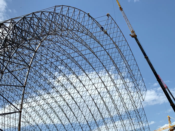 (2)网架加工前应对现场尺寸进行复测,确认无误后方可进行加工、安装;网架制作、运输、安装应遵守《空间网格结构技术规程》JGJ7-2010、《钢网架石首螺栓球节点》JG/T 10-2009、《钢网架石首螺栓球节点用高强度螺栓》 GB/T 16939-2016、《石首钢结构石首工程石首施工规范》 GB50755-2012、《石首钢结构石首工程施工质量验收标准》 GB50205-2020。